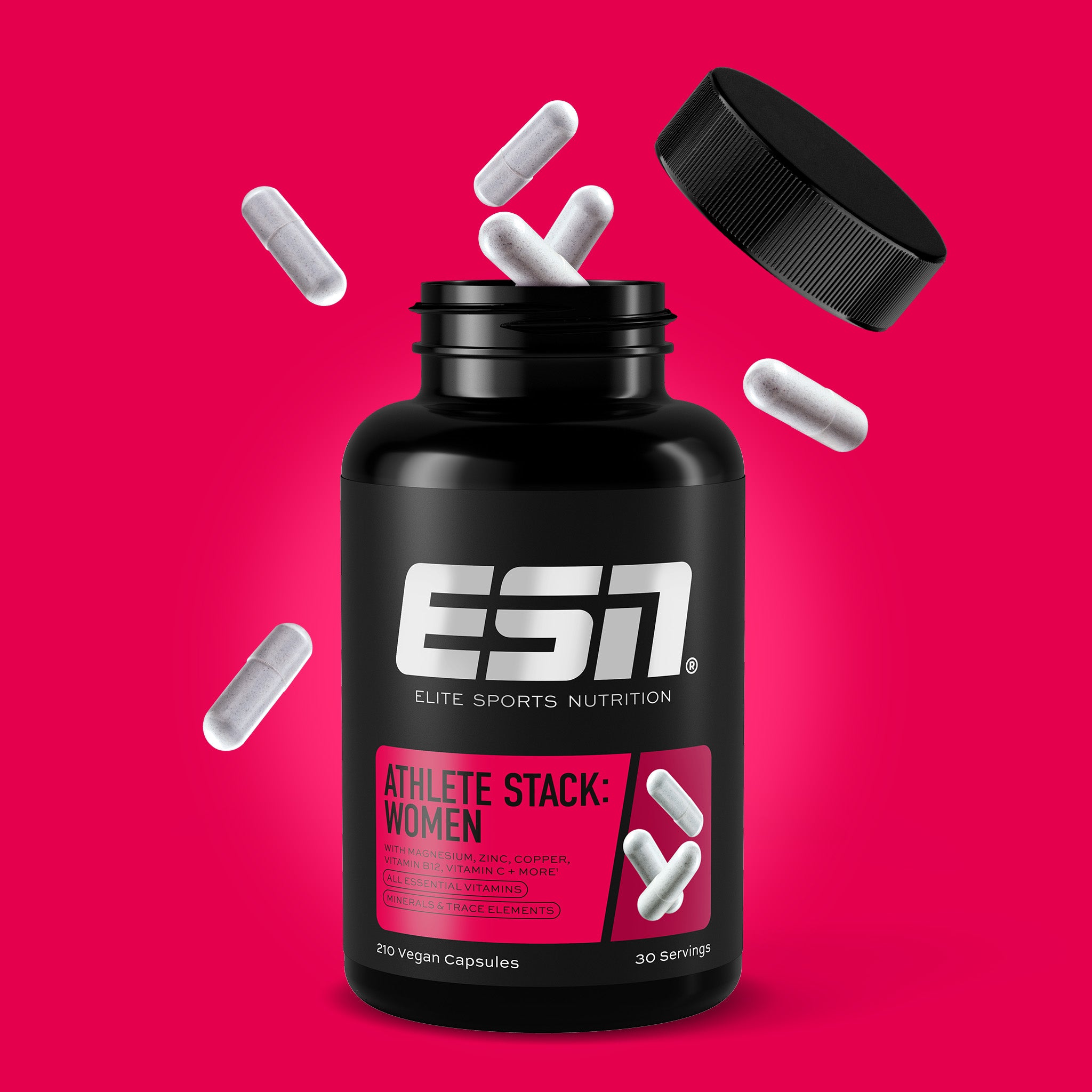 All-in-One-Support – mit unserem Athlete Stack. Diese effektive Nährstoffkombi versorgt dich ideal mit Vitaminen, Mineralien und Spurenelementen. Dabei haben wir die Dosierungen und Inhaltsstoffe an dein Aktivitätslevel und dein Geschlecht angepasst, um dir den besten Support zu bieten.