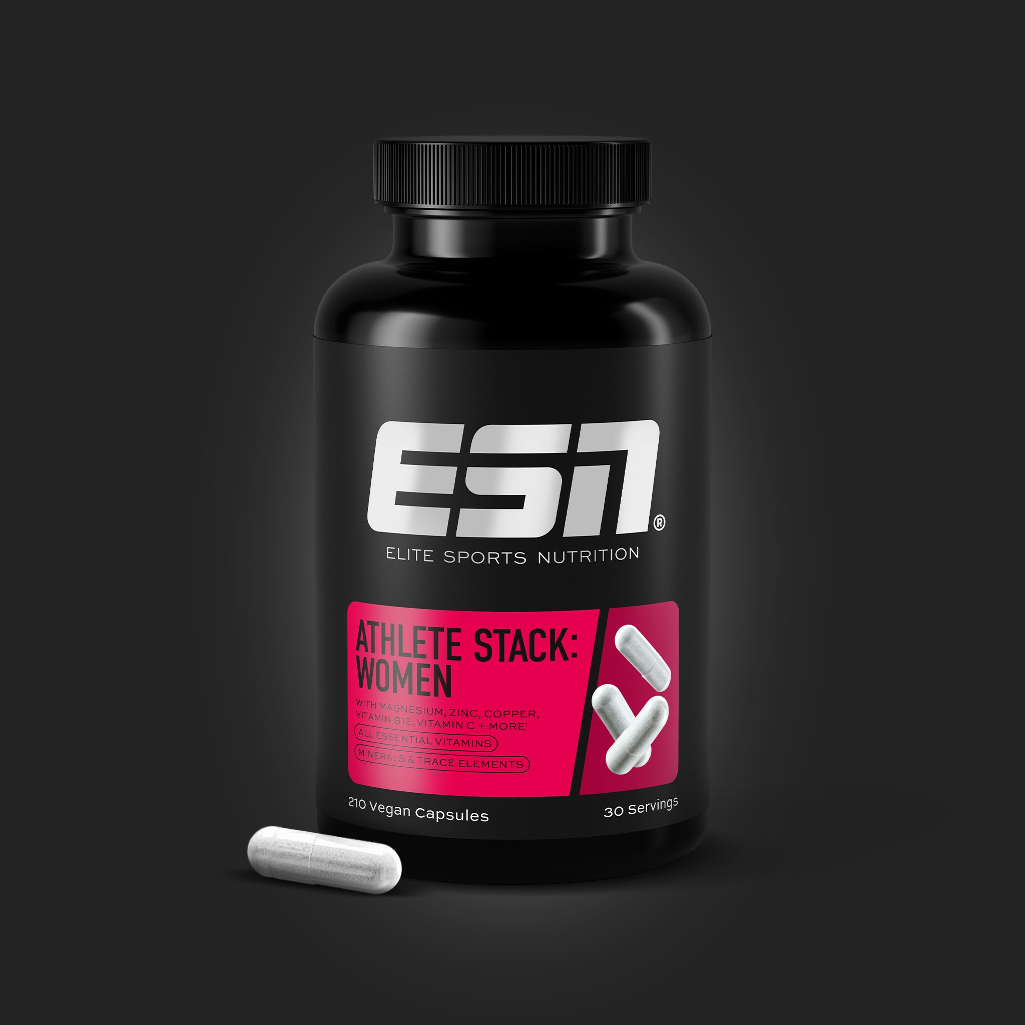 All-in-One-Support – mit unserem Athlete Stack. Diese effektive Nährstoffkombi versorgt dich ideal mit Vitaminen, Mineralien und Spurenelementen. Dabei haben wir die Dosierungen und Inhaltsstoffe an dein Aktivitätslevel und dein Geschlecht angepasst, um dir den besten Support zu bieten.