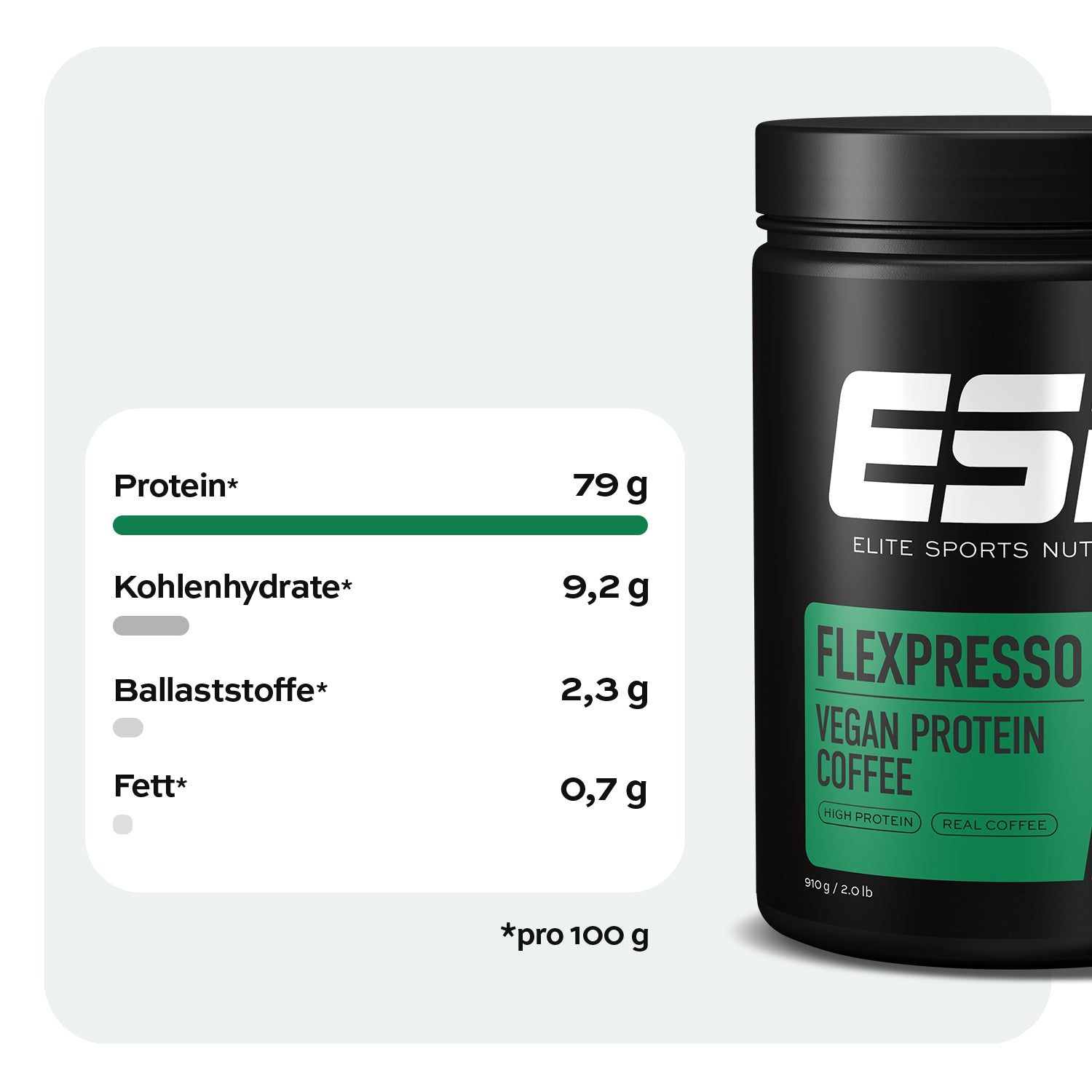 Start your day the vegan way – mit Flexpresso Vegan. In unserem Proteinkaffee kombinieren wir wertvolle, pflanzliche Protein-Power mit echtem Kaffee. Volle Cremigkeit, voller Geschmack und voller Support für deine Muskeln.1