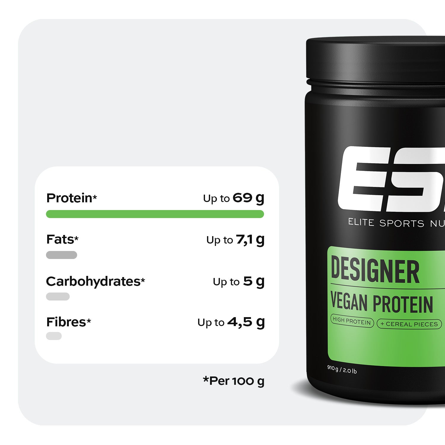 Plant protein power at it's best - experience full vegan protein power with our Vegan Designer Protein. The mix of pea, hemp and sunflower protein provides you with full flavour and incredible creaminess, valuable proteins and a complete amino acid profile.