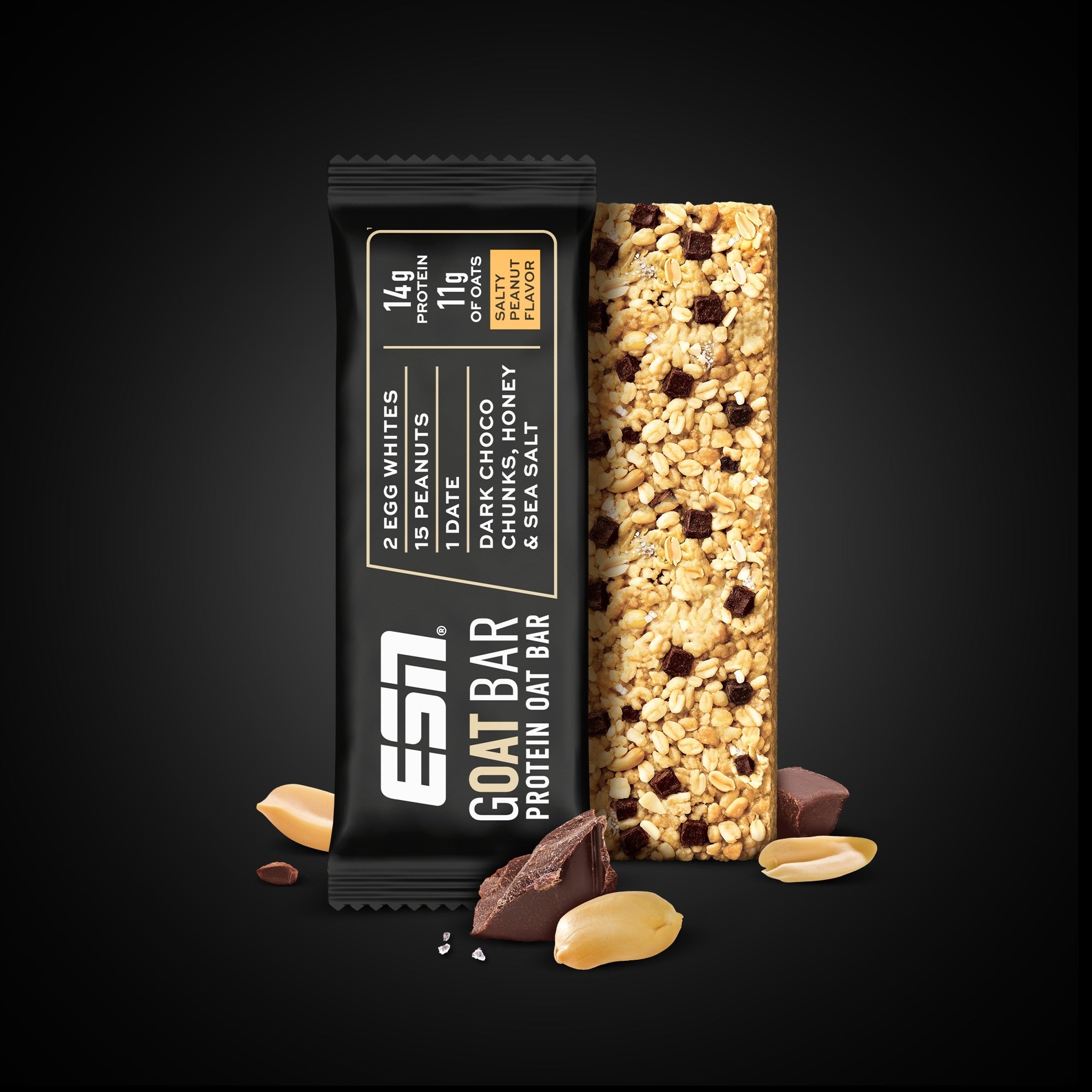 Oat Flakes (gluten-free) 20%, Roasted Peanuts 19%, Egg White Powder 17%, Date Paste 11%, Dark Chocolate Chunks 7% (Cocoa Paste, Sugar, Cocoa Butter, Emulsifiers (Lecithin (Soy), Polyglycerol Polyricinoleate), Flavor),Oligofructose, Inverted Sugar Syrup, Honey 6%, Soy Crisps (Isolated Soy-Protein, Tapioca Starch, Salt), Coconut Fat, Sea Salt, Sea Salt Flakes, Flavoring.Key Facts - GOAT Bar