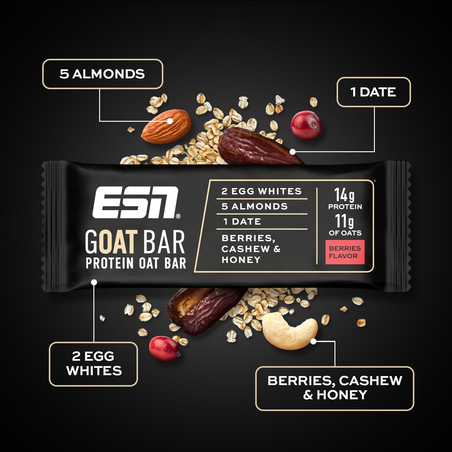 Our GOAT Bar provides real ingredients, 14g of high-quality egg white protein, wholesome energy from oats, nuts and fruits – no fillers, naturally sweetened with dates & honey.