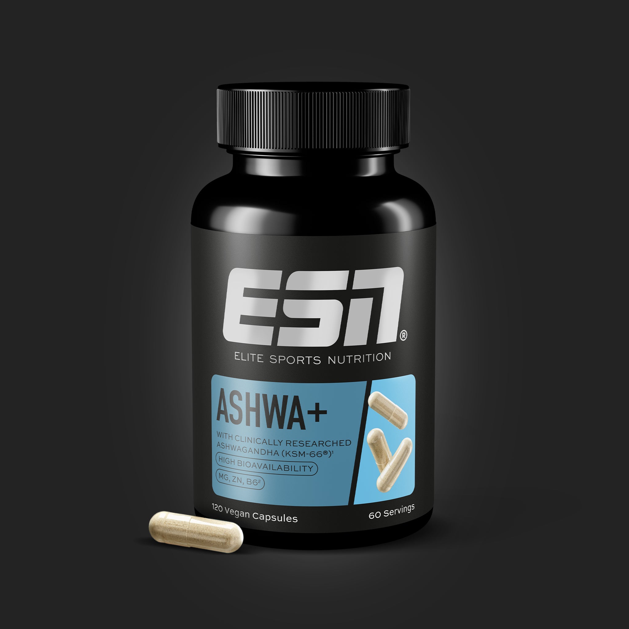 Przejmij kontrolę nad stresem oksydacyjnym z Ashwa+. Połączyliśmy opatentowaną Ashwagandhę (KSM-66®) z składnikami odżywczymi redukującymi stres, tworząc mieszankę, która utrzymuje równowagę umysłu i chroni Twoje komórki. To idealny towarzysz podczas intensywnych treningów lub w pracowite dni.