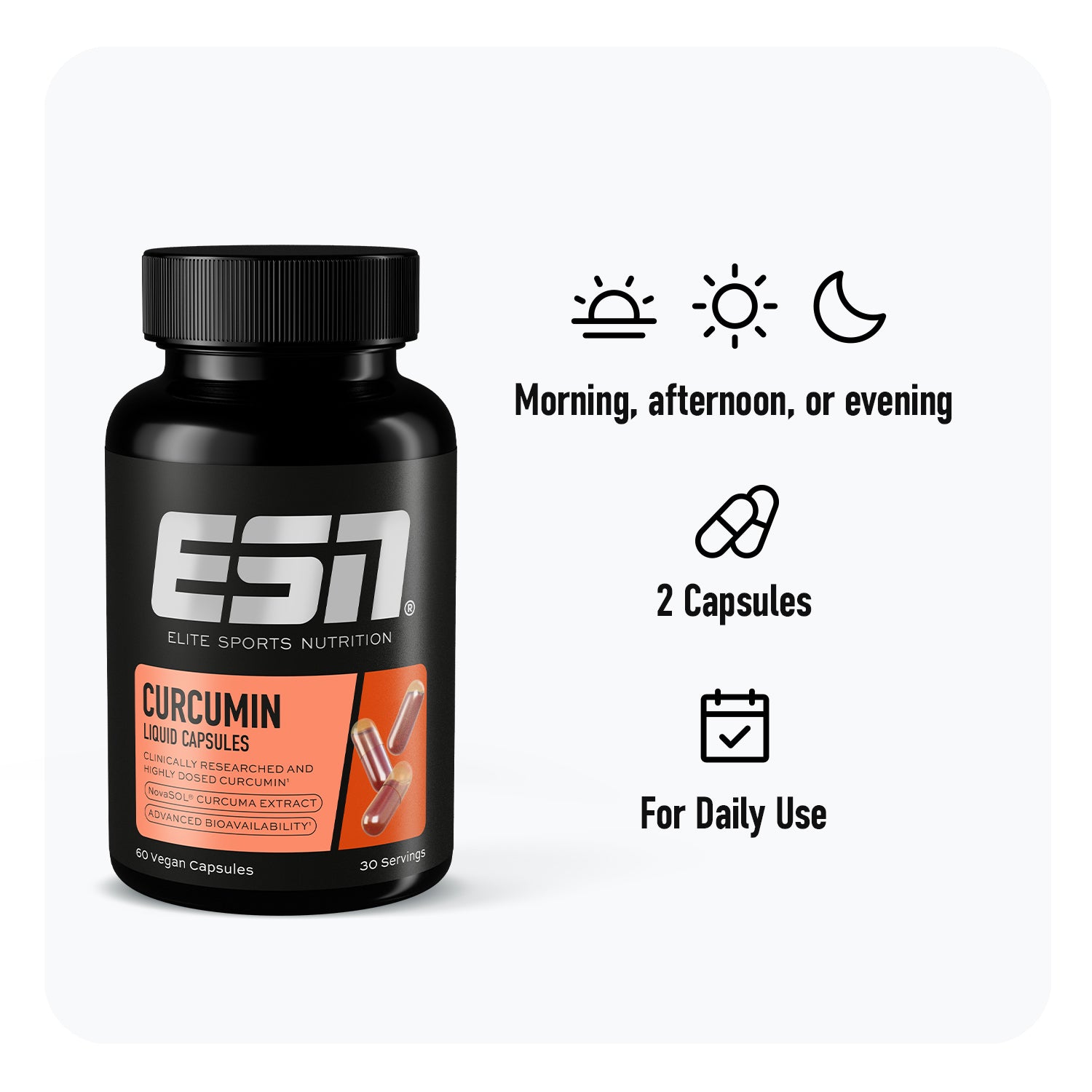 NovaSOL® Kurkumina (emulgator (polisorbaty), ekstrakt z kurkumy), powłoka kapsułki (metyloceluloza hydroksypropylowa).Curcumin Liquid Capsules - kluczowe fakty