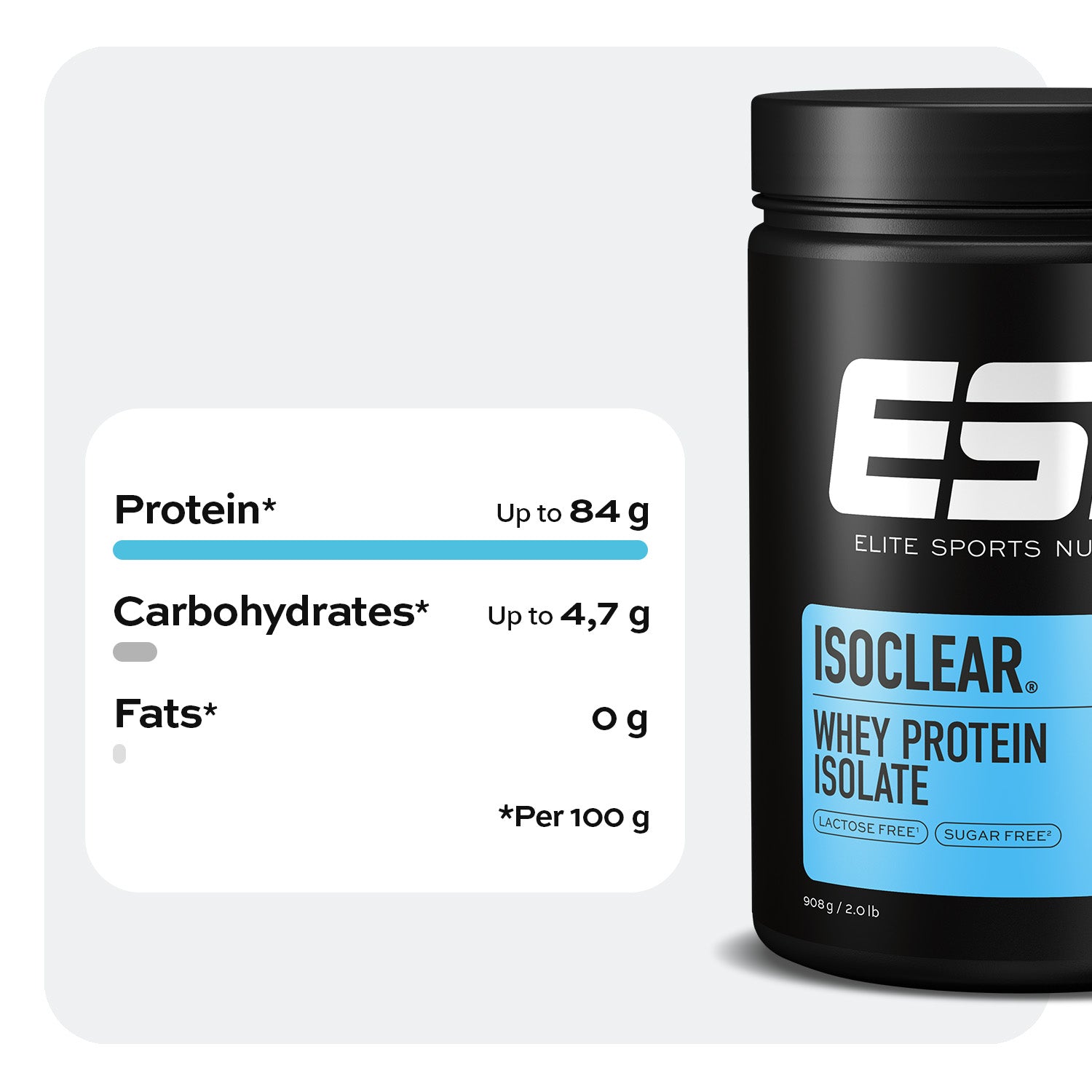 Świeży, klarowny i pełen białka: Isoclear. To nasz orzeźwiający napój białkowy, który w zależności od smaku smakuje jak sok, lemoniada lub iced tea – i to bez cukru, tłuszczu i laktozy!2 Idealny, aby dostarczyć twoim mięśniom białka, łatwiej zaspokoić swoje zapotrzebowanie na białko lub wprowadzić różnorodność do swojego białkowego planu.