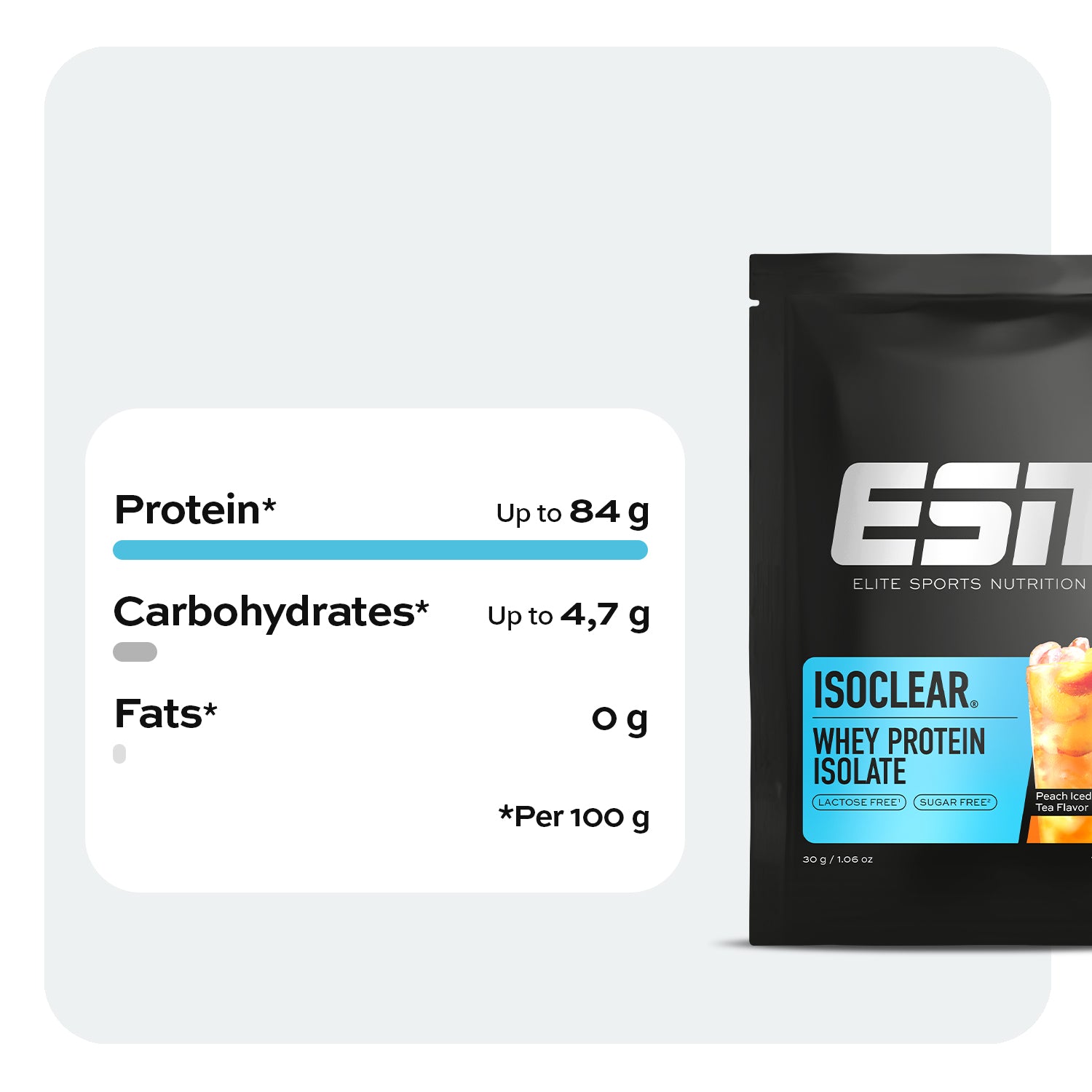 Odkryj nasz bestsellerowy klarowny białko: Isoclear. Teraz dostępny w pudełku próbnym z 5 orzeźwiającymi smakami. Ciesz się tym klarownym napojem białkowym, który smakuje jak twoja ulubiona herbata mrożona, lemoniada lub napój gazowany – całkowicie wolny od cukru, tłuszczu i laktozy! 1