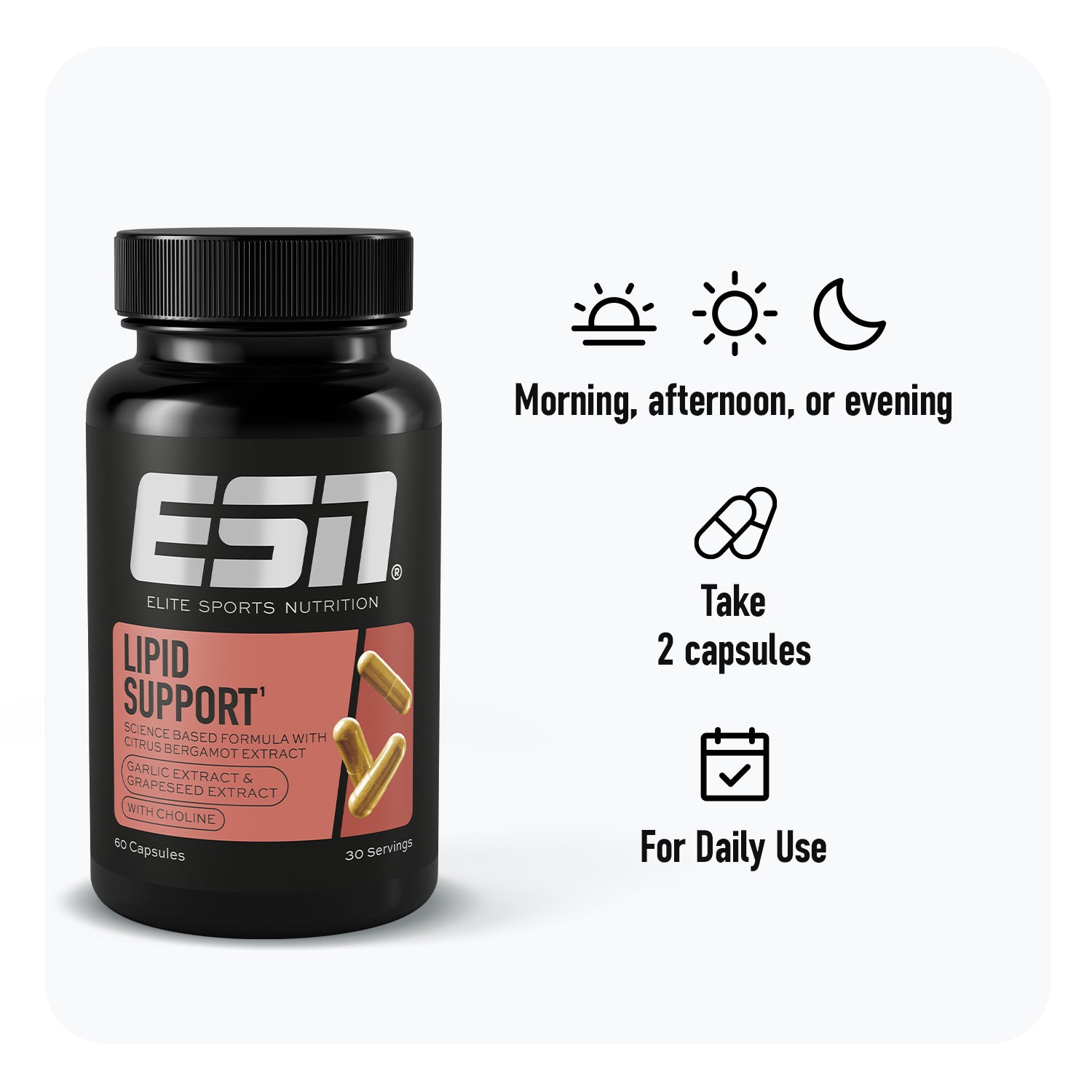 ESN Lipid Support¹ dostarcza składników odżywczych takich jak tiamina i cholina, które są naukowo potwierdzone jako wspierające prawidłowy metabolizm lipidów. Aby zapewnić Ci dodatkowe wsparcie, uzupełniliśmy tę starannie opracowaną formułę ekstraktami roślinnymi, wybranymi ze względu na ich komplementarne korzyści.