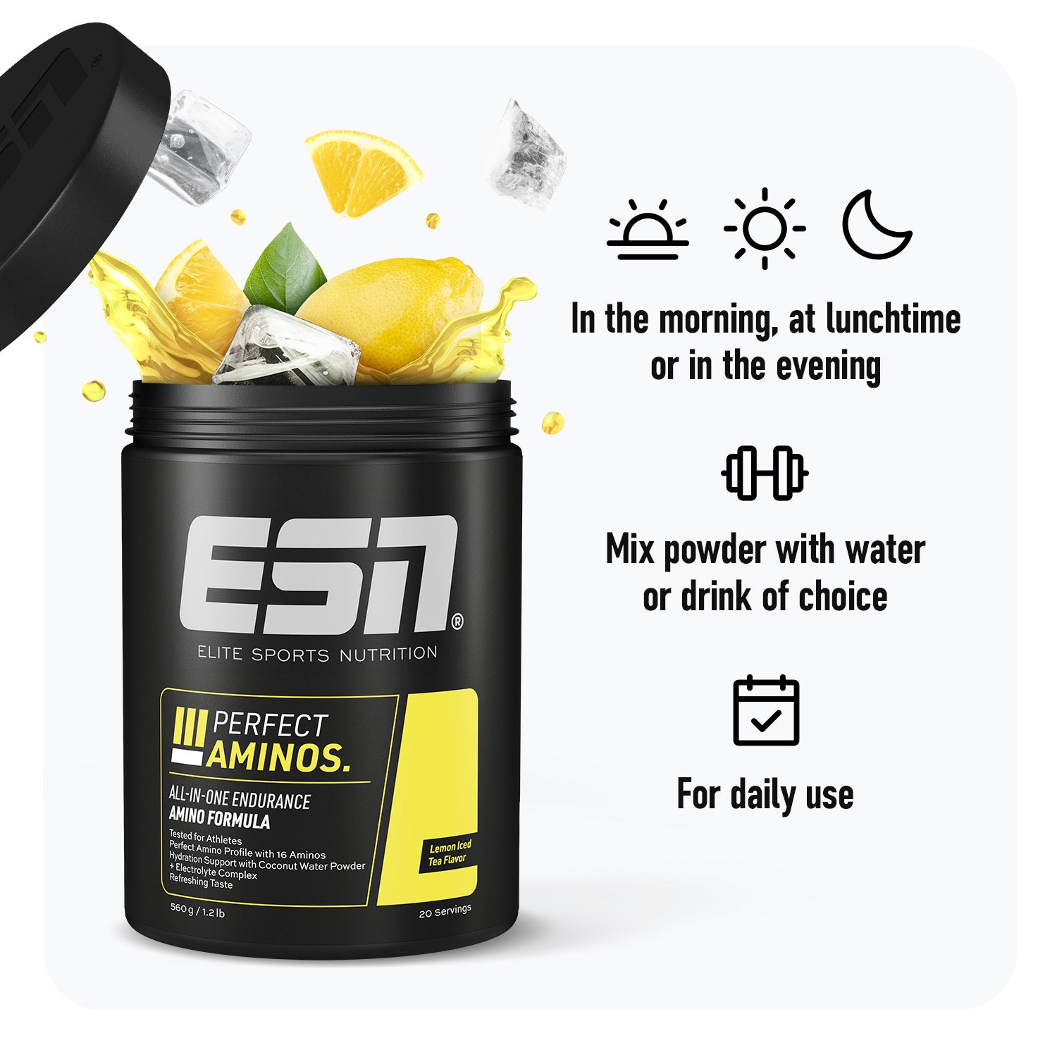 Osiągnij swoje najlepsze wyniki dzięki naszym Perfect Aminos. Ta unikalna formuła aminokwasów, z optymalnym profilem aminokwasów, kompleksem elektrolitów, witaminą B6 i innymi składnikami, zapewnia Ci wszechstronne wsparcie, którego potrzebujesz do optymalnej wydajności, regeneracji i nawodnienia.1 Specjalnie zaprojektowana dla sportowców wytrzymałościowych!